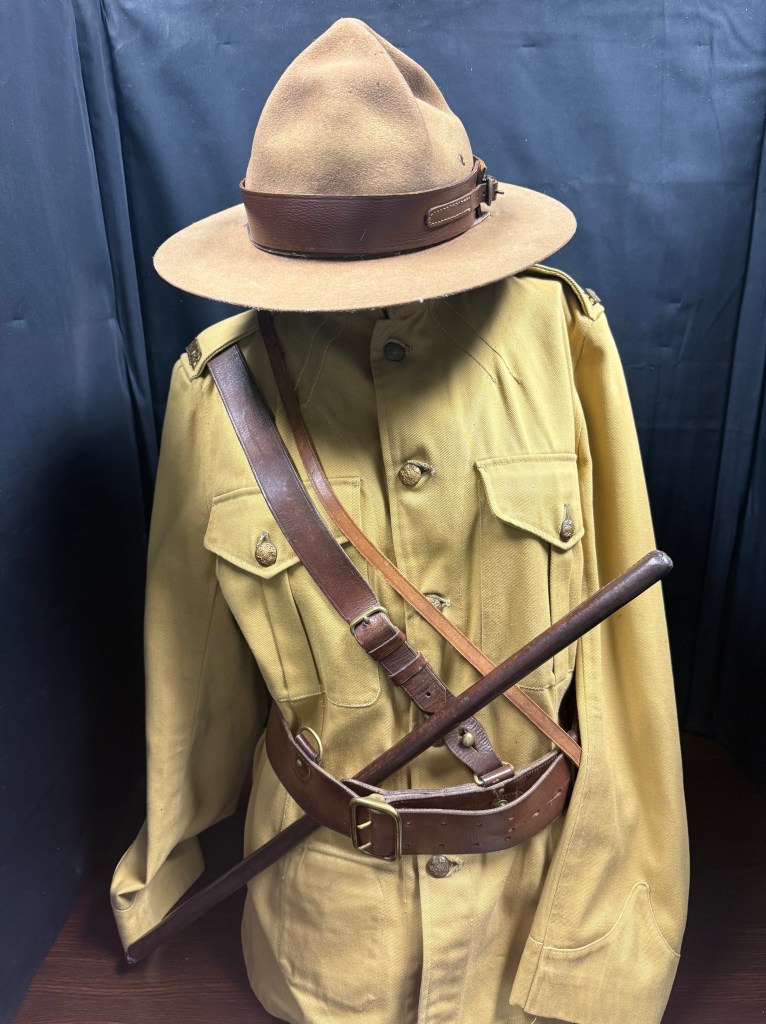 On display at the museum are two uniforms worn by Canadian volunteers during this conflict. Specifically the uniforms belonged to Sergeant Ira Milner – 2nd Canadian Mounted Rifles. Although British uniforms were made from khaki material, Canadian suppliers struggled to provide adequate uniforms for volunteers and many early uniforms were made of canvas or wool. These uniforms were eventually replaced with khaki from British stocks. The first Canadian troops to arrive wore the 1898 Cork pattern pith helmet before these were replaced with caps. The 1898 Helmet was white, and troops would use coffee to stain them to a more camouflaged beige. Canadian troops were armed with the new Lee-Enfield Mk 1 .303 rifle – improved versions of which would serve Canadian troops through both world wars.
