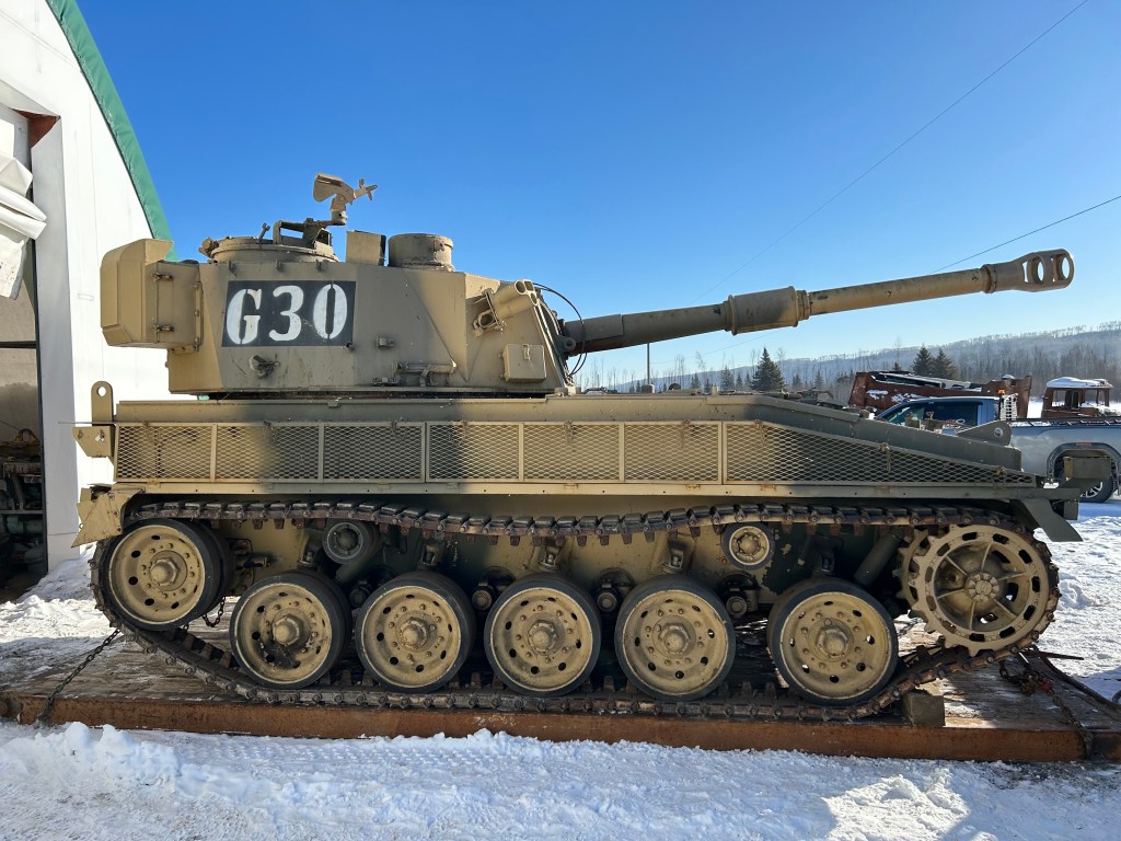 Also on loan to the museum from a private collector is our 55 ton Chieftain MBT represents the type that entered service in 1967. Chieftain’s served with the British Army of the Rhine, Iran, Jordan, Kuwait and Oman. With a focus on armor and firepower over mobility the Chieftain differed from its contemporaries like the Leopard 1s used by Germany and Canada which prioritized speed. Chieftain MBTs (Main Battle Tanks) were second Generation MBTs which replaced the mix of heavy (infantry), medium (Cruiser), and light tanks. Chieftains had up to 390mm of armor on a mantleless turret. Chieftains would mount the highly successful 120mm L11A5 Rifled Gun as its main armament. Chieftains were also equipped with 2 L7 Machine guns.